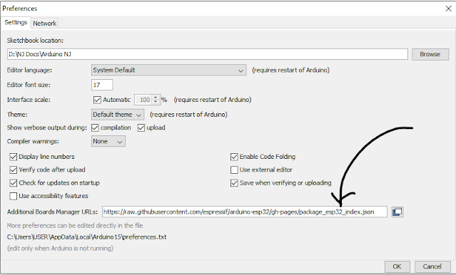 - ඒ window එක open වුනාට පස්සේ ඒකේ ඇත් Additional Boards Manager URLs කියල තියෙන්නේ එතන මෙන්න මේක paste කරන්න හොදේ 🤓